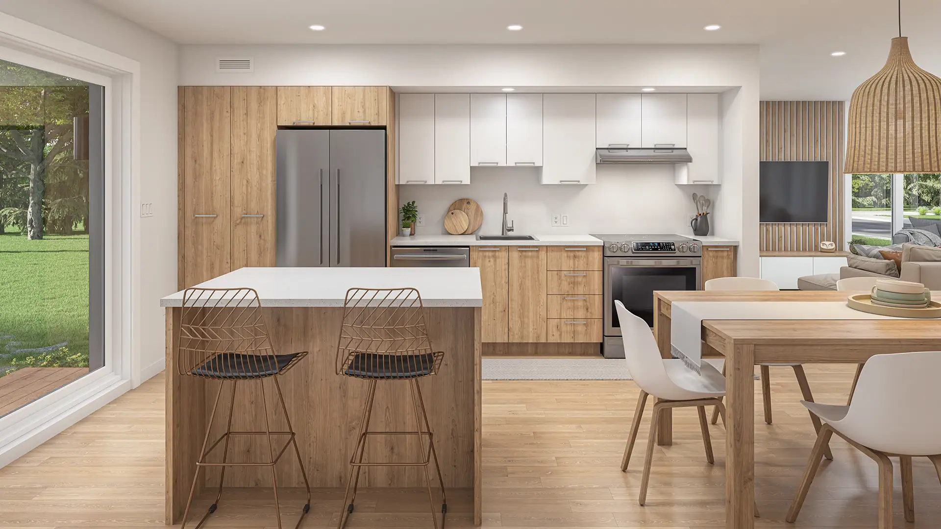 Finally, H.O.M homes are designed ans built here in Québec, using Québec lumber and 100% recyclable, eco‑responsible insulation and sealing systems.