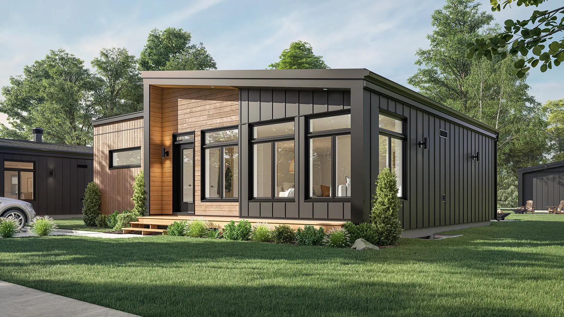 Avec ses volumes épurés et sa façade soulignée d’un toit en angle aux lignes graphiques, Nayô affiche un style unique. Son avancée architecturale et son jeu de matériaux lui confère un style inspiré du minimalisme scandinave. Disponible en noir ou en blanc, elle s’intègre harmonieusement à son environnement tout en affirmant sa personnalité.
